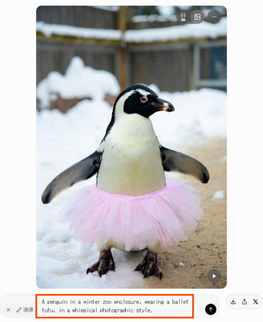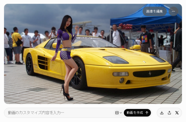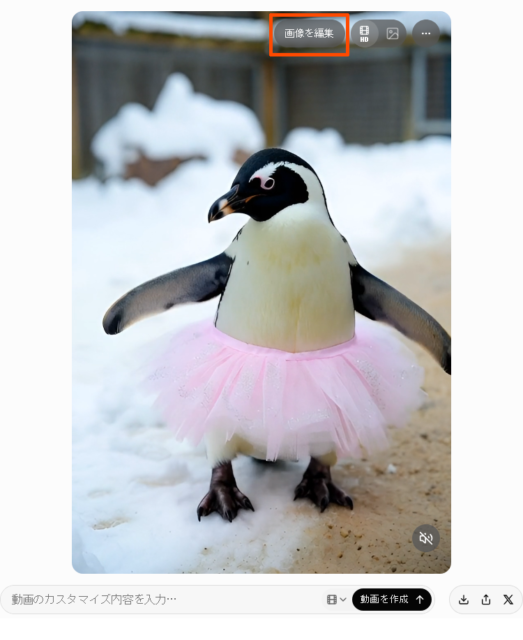 6. この【画像を編集】をクリックしますと、この動画の元となった画像のプロンプトが画面一番下のフォームに現れます。